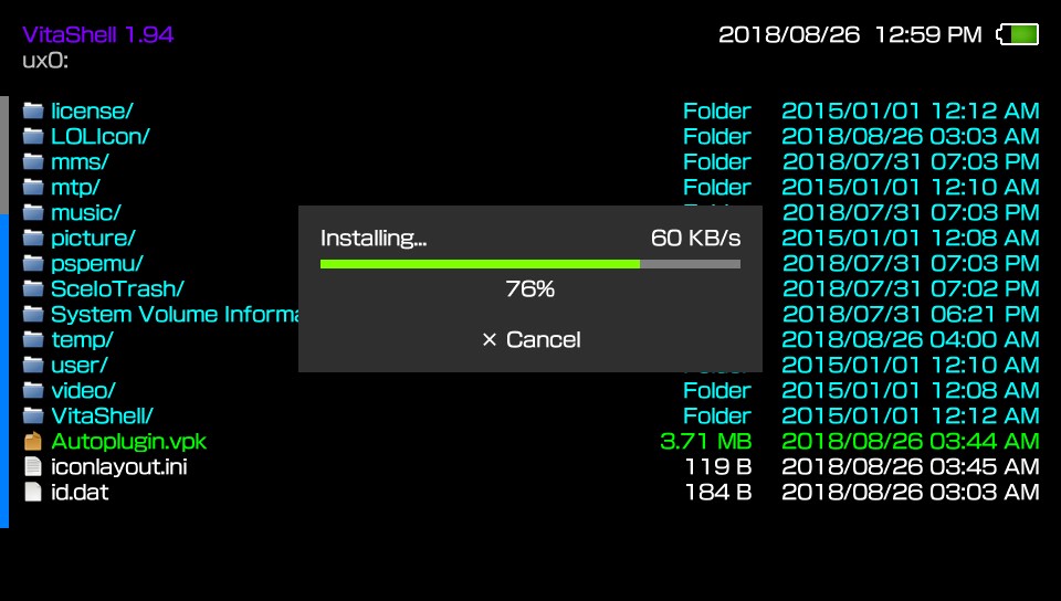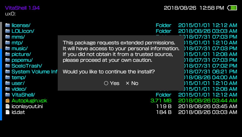 vitashell在Autoplugin.vpk上按下